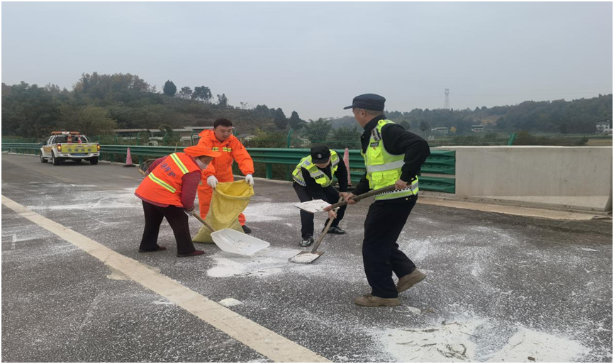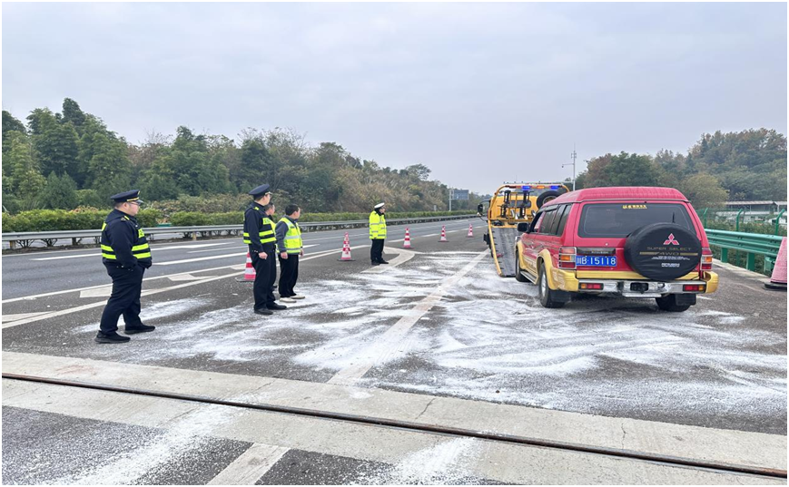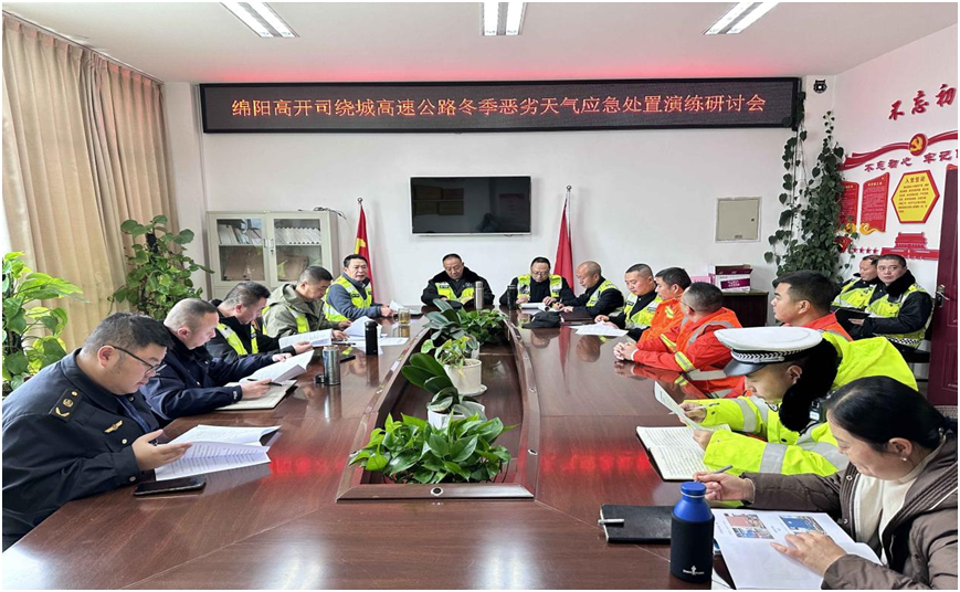 為認(rèn)真貫徹習(xí)近平總書記關(guān)于低溫雨雪冰凍災(zāi)害防范應(yīng)對(duì)工作的重要指示批示精神,落實(shí)省市、市國資委、省高管局、交發(fā)集團(tuán)等上級(jí)部門關(guān)于今冬明春惡劣天氣安全保障工作部署,有力保障低溫、雨雪、冰凍、大霧等惡劣天氣情況下高速公路運(yùn)營安全暢通,12月11日上午,高開司聯(lián)合省交通執(zhí)法二支隊(duì)十五大隊(duì)、省高速公安二分局六大隊(duì)、綿陽路橋公司、銀發(fā)救援公司等協(xié)作單位開展冬季惡劣天氣應(yīng)急處置演練。